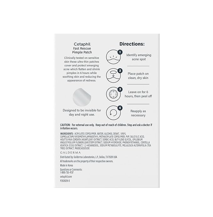- CETAPHIL ACNE FAST RESCUE PIMPLE PATCH: Designed to target emerging acne spots and provide visible results in 6 hours
