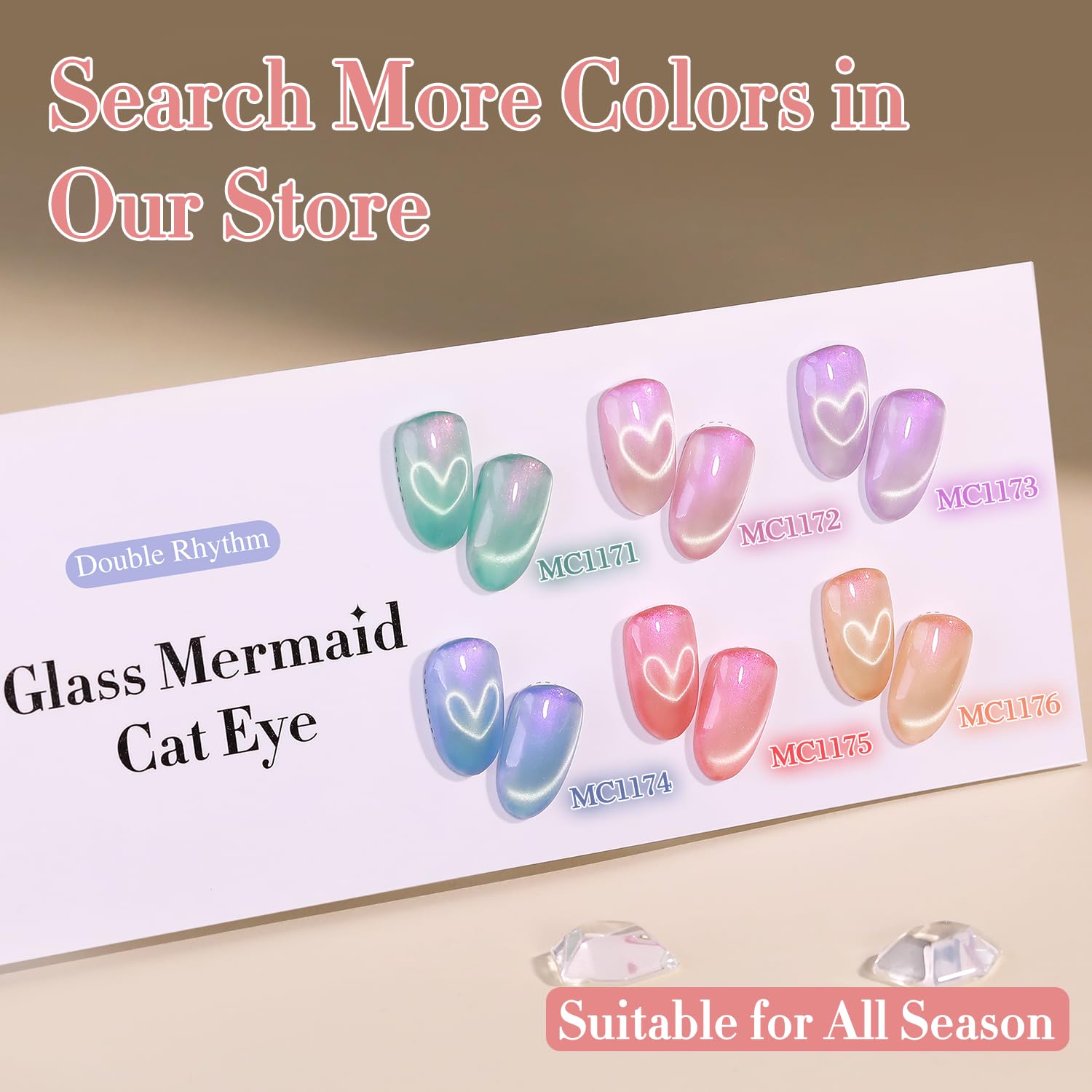Double Rhythm 0.5 Oz Cat Eye Gel Polish with Magnet Same Color Same Bottle Holographic Glitter Shimmer Translucent Color Salon 15 ML Magnetic Nail Art (Mermaid Nude-MC1176)