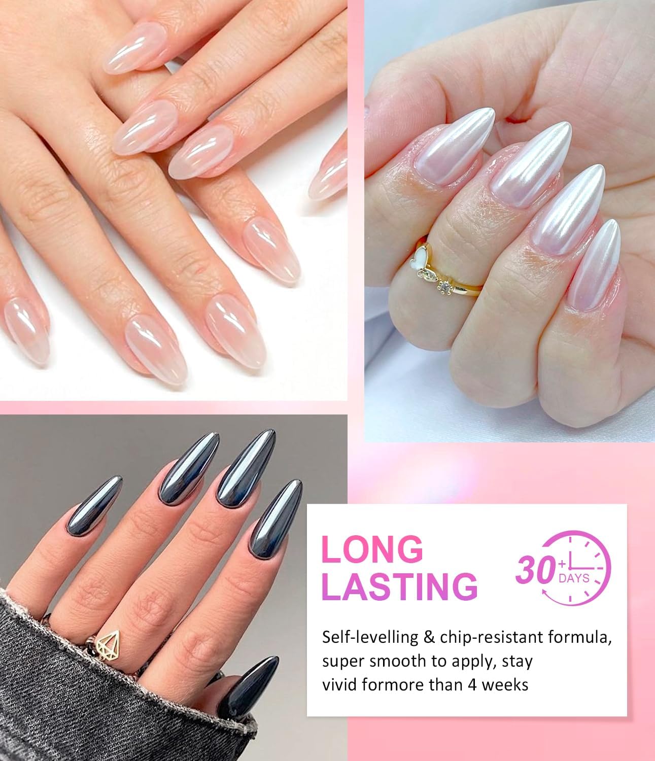 - Distinctive Pearl Chrome Powder: Our powder is a newly upgraded super transparent pearl chrome nail powder. The brightness and shiny is better than the old version, this powder is non-toxic, harmless, especially durable, vegan and harmless. Elevate your nail art with our superior quality chrome powder set that effortlessly creates mesmerizing mermaid chrome effects.