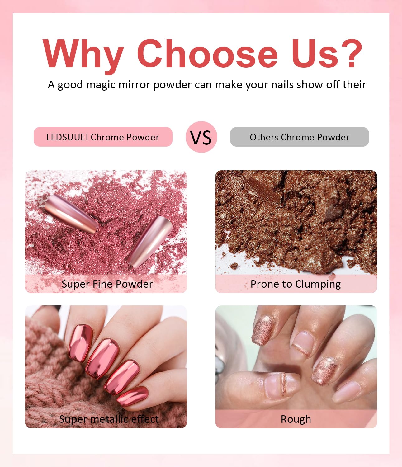 - Easy to Use&Wide Application: The chrome powder stuck well to the nails that applied No-wipe Top Coat. Use it and try more DIY nails with chrome hearts nail charms, flatback rhinestones, and nail stickers.The colorful nail powder can be applied on UV gel nails, acrylic nails, and natural nails. It can be mixed into nail gel polish for its solvent resistance. It is multifunctional DIY dye for decorating your valentines nail art with nail charms, nail gems, dip powder nail kit.