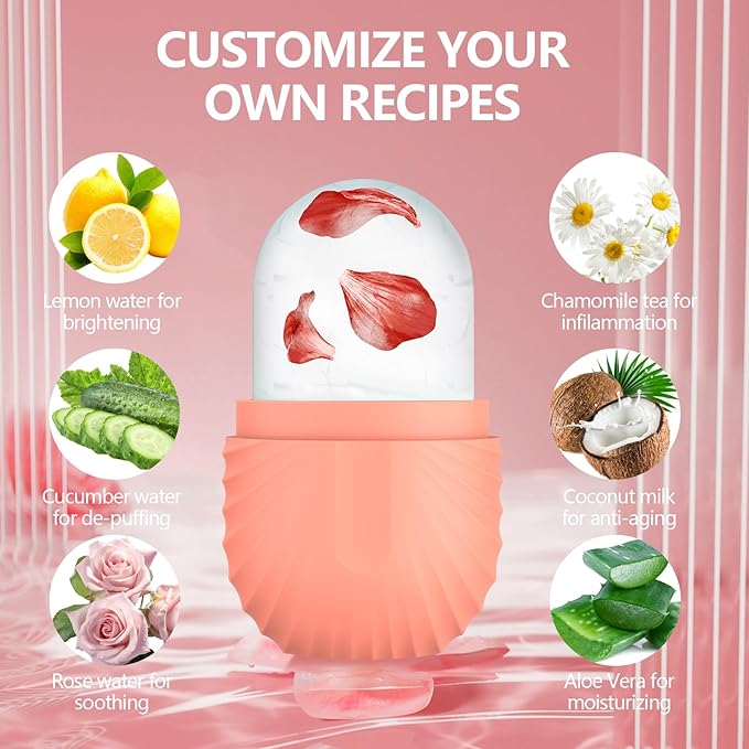 - Customize Preferences - Facial ice roller can enhance the skin care effect as per your creativity and customized formula according to your specific skin needs, such as lemonade for whitening, and coconut for improving skin. Even you can use a juicer to squeeze them into juice, then add water, essential oils, and roses to the ice tray.