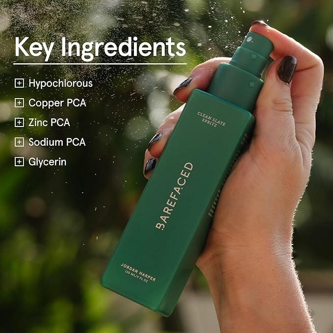 Barefaced Clean Slate Spritz 4 Fl Oz - Hypochlorous Acid Mist for Face & Body, Cleanses Skin on the Go, Setting Spray For Makeup, Boosts Hydration, Reduces Redness, and Soothes Sensitive Skin