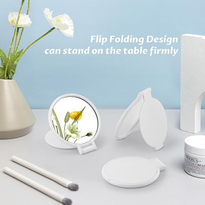 - Well Made: Compact mirror bulk made made of glass and plastic material, with a long service time, no-fading, and is not easy to deform or break. After opening the mirror cover, compact mirror bulk can also stand on the desktop to liberate your hands and facilitate grooming.