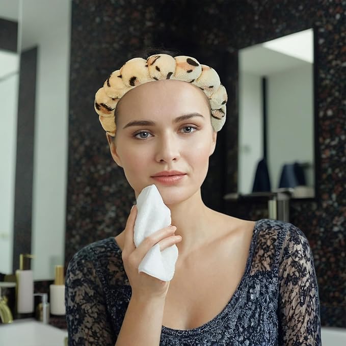 7 Pcs Spa Set, Facial Headband and Wristband Set, Skincare Accessories, College Style Girl Gift, Hair Accessories for Women and Girls(Leopard)