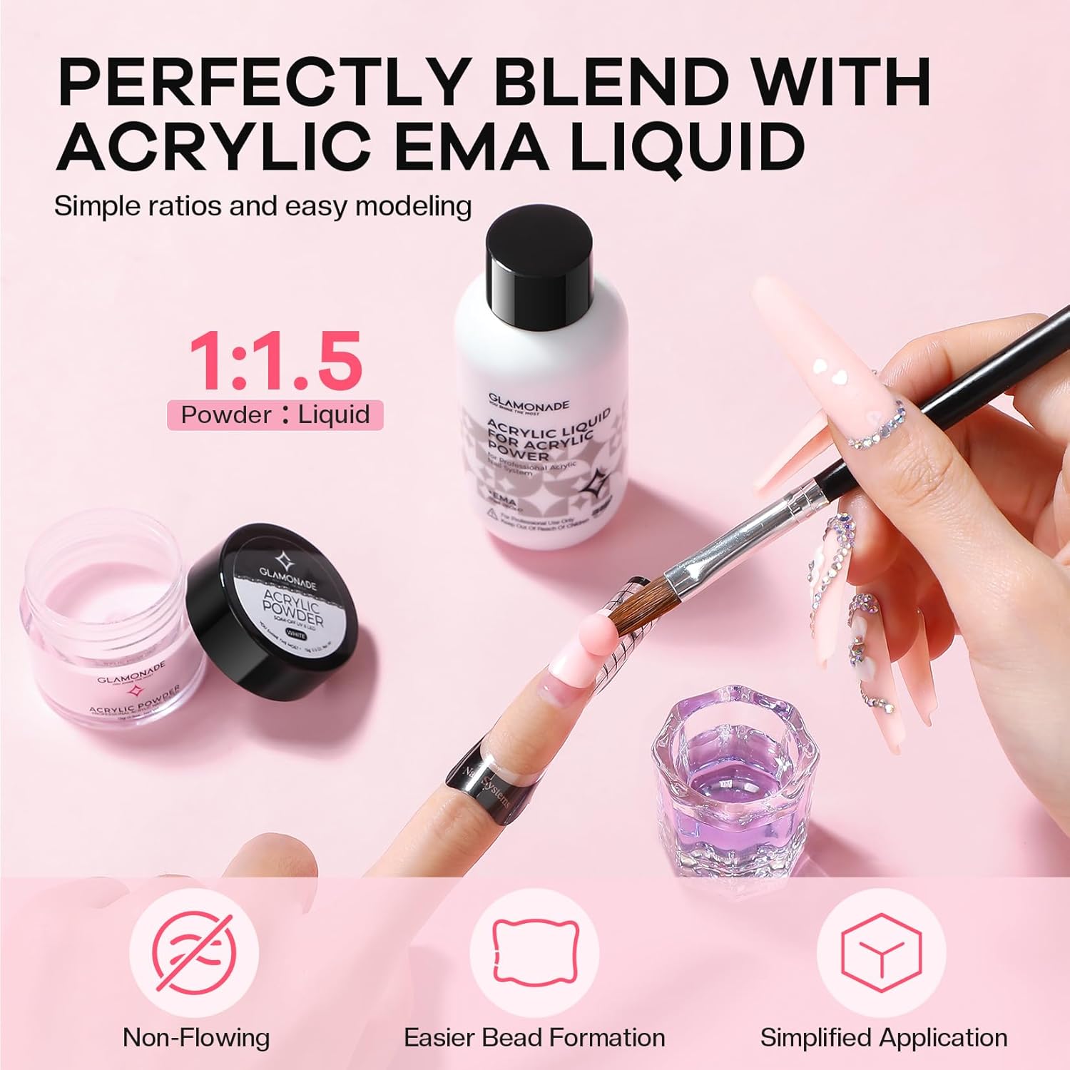 - Newly Upgraded Non-Flowing Acrylic Powder:Specially formulated acrylic powder is designed to stay in place, making sculpting and perfecting your nails easier than ever. The innovative non-flowing formula offers superior control, ensuring smooth and seamless application every time. Whether you're a beginner or a professional, this acrylic powder is a must-have for creating stunning, long-lasting nails effortlessly.