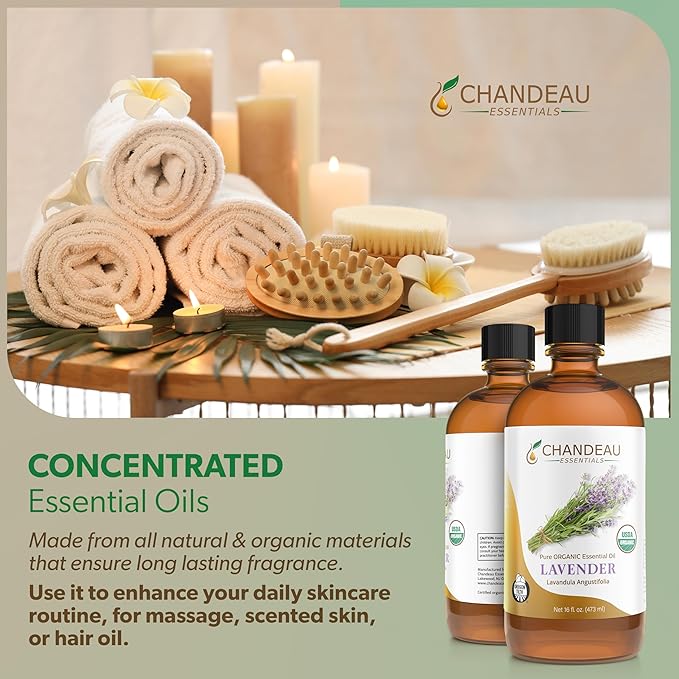 - Large Bottle for Dedicated Users: Experience the benefits of Chandeau organic essential oil with our generously sized 16 fl. oz. UV resistant amber bottle. Perfect for long-lasting use, dilute with carrier oil