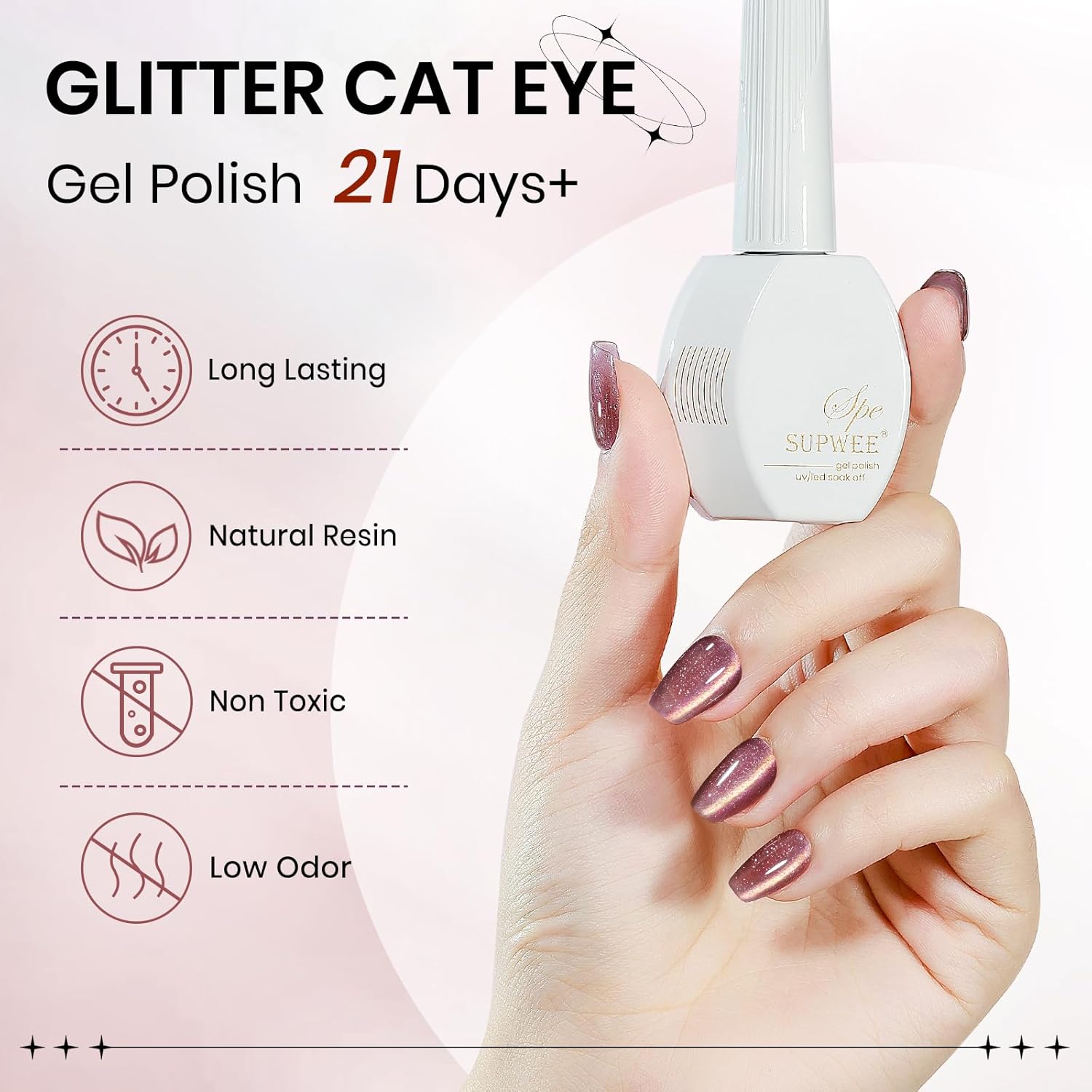 - Ideal Gift and Long Lasting: This shimmer cat eye magnetic gel is easy to apply and will last for 21+days with operation, will show different effects with different angles, and it's the popular gift for birthdays, Christmas, Mother's Day