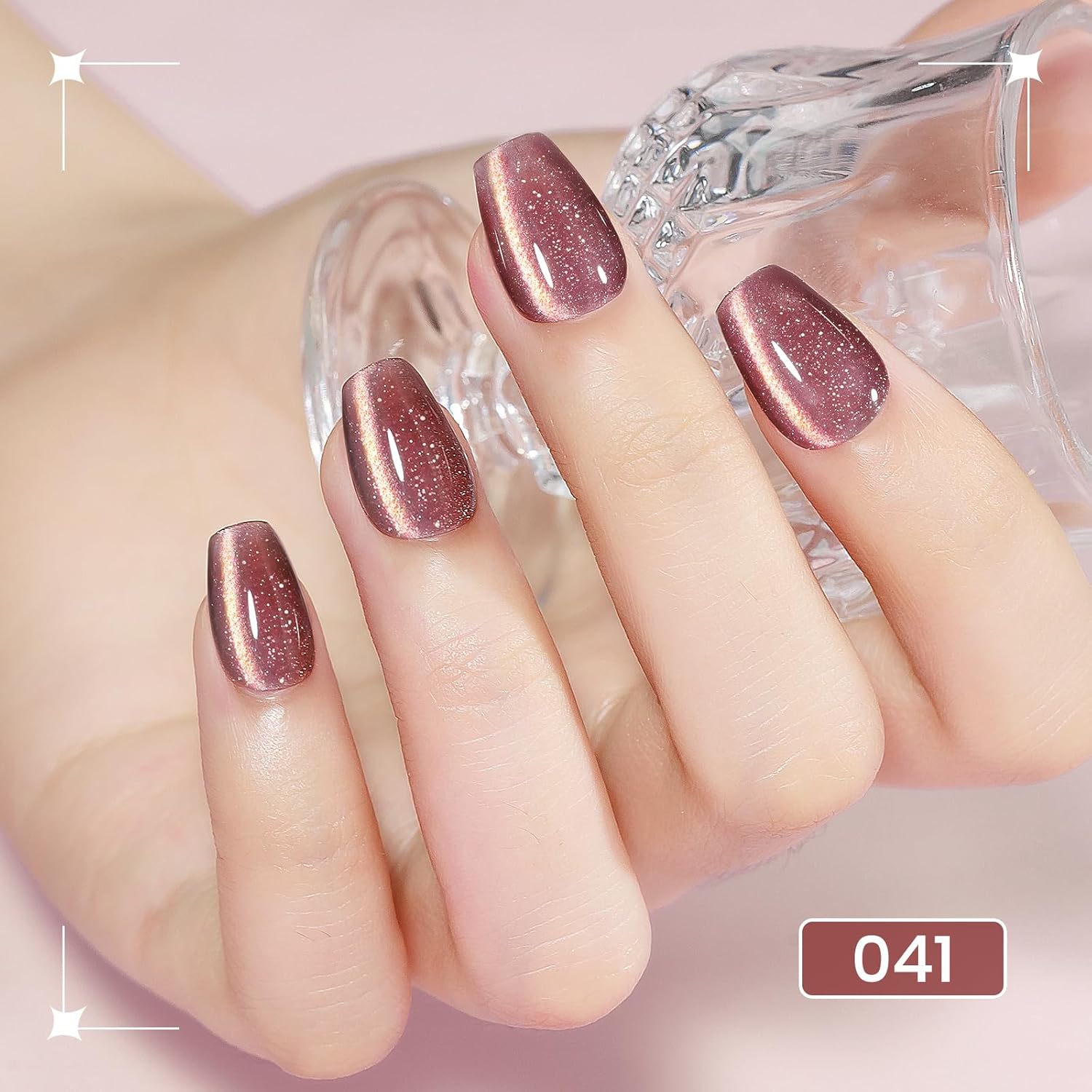 - Star Diamond Cat Eye Gel Polish: 1*15ml(0.5fl oz) brown cat eye gel nail polish with 1PC magnetic stick. Mixed with smoothie magnetic glitter, it's perfect for making a statement