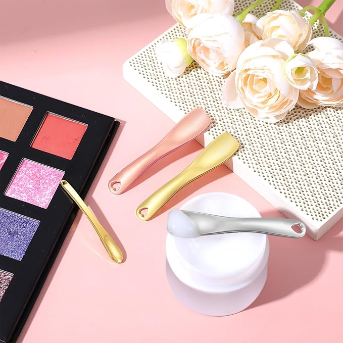 - 【Three Color Options】:Mini lotion spatula consists of 3 heart-shaped mini makeup spatulas and 1pcs mini spoons, available in three colors: silver, gold, and rose gold. Cosmetic spatula is enough for your daily replacement or use