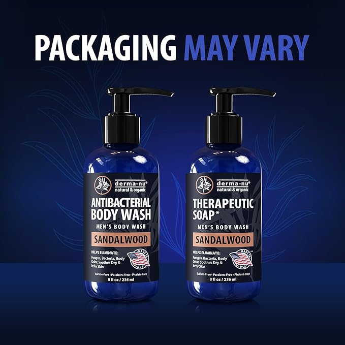 Derma-Nu Men's Body Wash – Bold & Woody Sandalwood Scent Antibacterial Body Wash for Jock Itch, Athlete’s Foot, Eczema & Back Acne – Antibacterial Soap for Men – Safe for All Skin Types – (8oz)