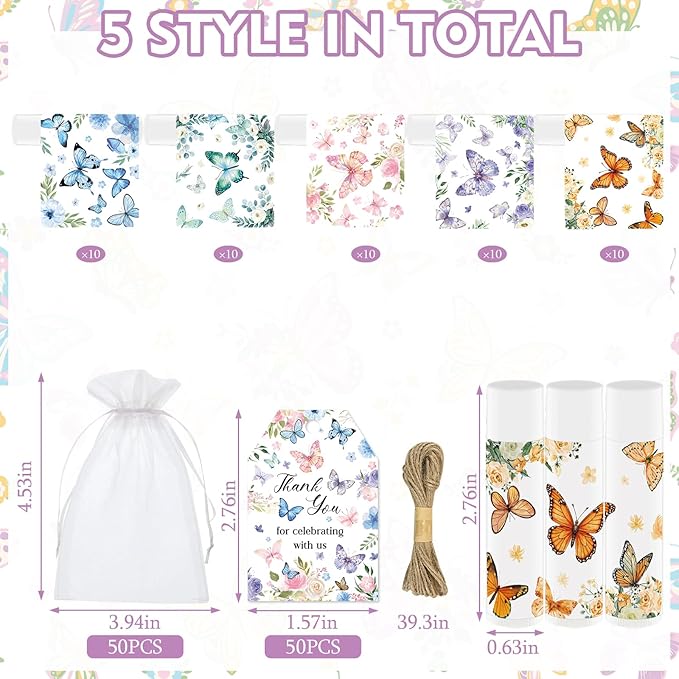 - ♥[Fully Packaged]:Our Butterfly Bulk Lip Balm Gift Theme Lip Balm Party Favour includes 50 lip balms, 50 organza packs and 50 thank you cards, easily enough for you to share with your loved ones, friends, colleagues or family.