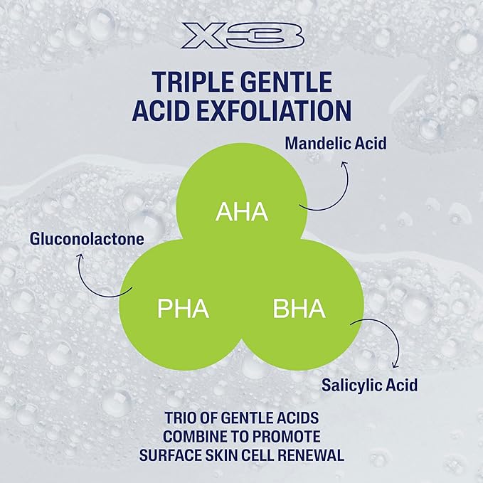 - IMPROVE TEXTURE AND TONE: Formulated with a unique triple acid blend of Salicylic Acid, Mandelic Acid and Gluconolactone, designed to remove excess oil, improve skin tone and retain skin's moisture while exfoliating