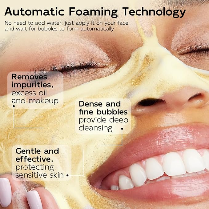 - 【Auto-Foaming Technology | Water-Free Application】Watch our turmeric face wash transform clay into cloud-like bubbles instantly! The self-activating formula eliminates messy mixing—Just apply it on your face with dry hands and face, and it will automatically produce thick and delicate foam without adding water.