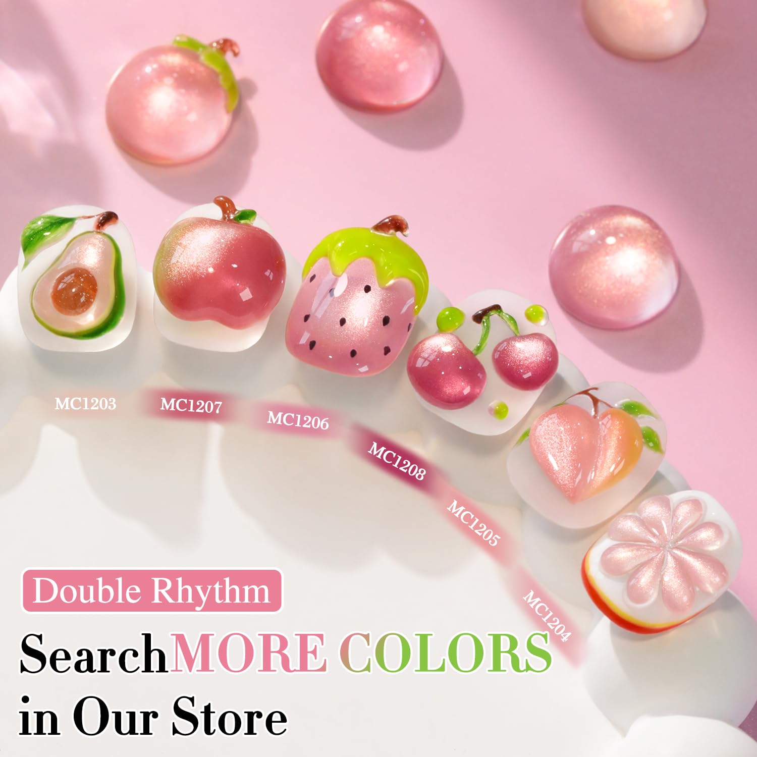 Double Rhythm 0.5 OZ Cat Eye Gel Polish with Magnet 15ML Holographic Glitter Shimmer Translucent Jelly Color Magnetic Nail Polish Salon DIY at Home (Fruit Purple Pink-MC1206)
