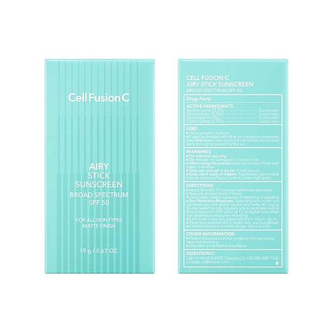 - Cell Fusion C Airy Stick Sunscreen is a lightweight, non-greasy sunstick that provides broad-spectrum protection with a smooth, semi-matte finish. Ideal for effortless, mess-free application on the go.