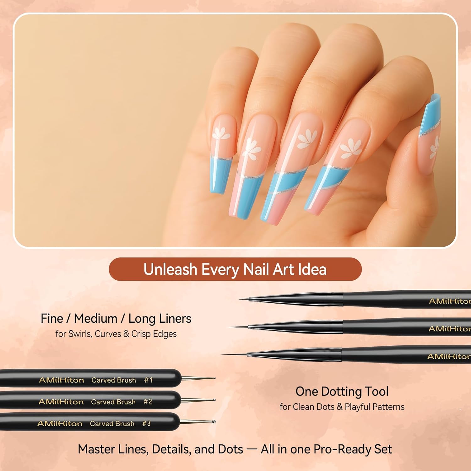 - Professional Nail Art Brush Set: Includes 8 different nail art brushes for painting, carving, extension, French tips, and more to meet various nail art needs
