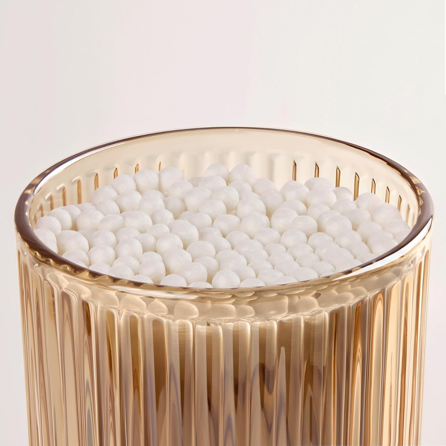 - VERSATILE BATHROOM STORAGE Q-TIP HOLDER:This 9.8 oz cotton swab jar with lid (3.9 x 3.5 in) is perfect for holding cotton swabs,balls,pads,bath salts,floss picks,hair ties,and more. A simple, stylish way to keep your bathroom or vanity neat and clutter-free.