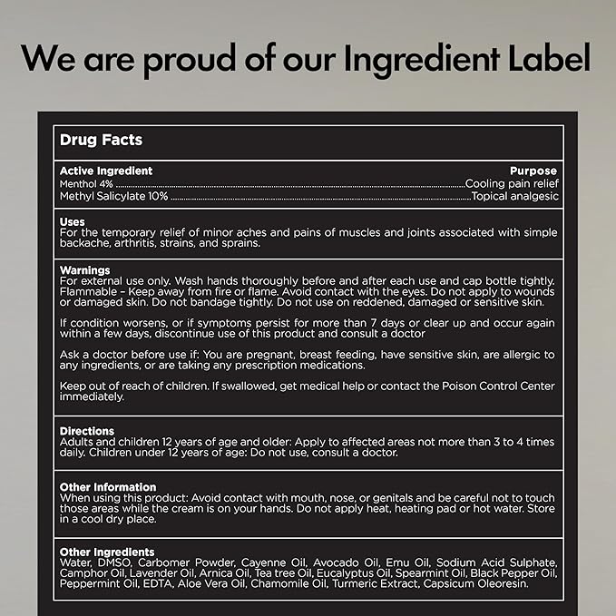 - NATURAL INGREDIENTS WITH PURPOSE: Formulated with 19 high-quality ingredients, each chosen for a specific benefit — like Arnica to reduce swelling, Menthol for a cooling sensation, and Capsicum to improve circulation and block pain signals.