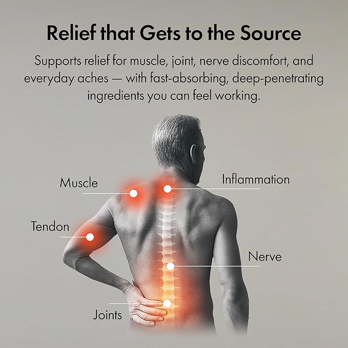- MAXIMUM STRENGTH RELIEF: Formulated to support relief from muscle, joint, tendon, and nerve discomfort. Designed for chronic aches with fast-absorbing ingredients you can feel working.