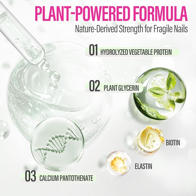 - Botanical Nail Repair Serum: Enriched with premium plant ingredients and nourishing compounds to deeply condition nail beds and cuticles. Effectively repairs dryness and peeling from frequent manicures. The plant-protein complex forms a protective moisture barrier for healthier nails.