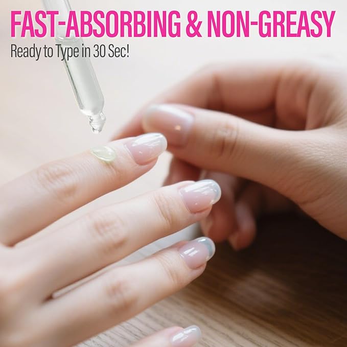 - Nail Hydration Fast Absorb Serum: This innovative water serum formula absorbs completely within 10 seconds without sticky residue. The lightweight yet concentrated essence delivers long-lasting hydration to keep nails and cuticles soft and supple. Perfect for those who dislike the greasy feel of traditional cuticle oils—use your phone or keyboard immediately after application without disruption.