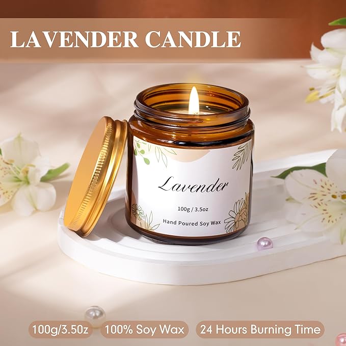 - 【RELAXING SPA GIFT BASKET】Made of premium soy wax, the 3.5oz lavender-scented candle in our relaxing spa gift baskets bath gift set can burn smokelessly & evenly for up to 24 hours. Paired with a cube of bath salt releasing lavender fragrance and a handmade soap, this set is perfect for gentle cleaning or a bath.