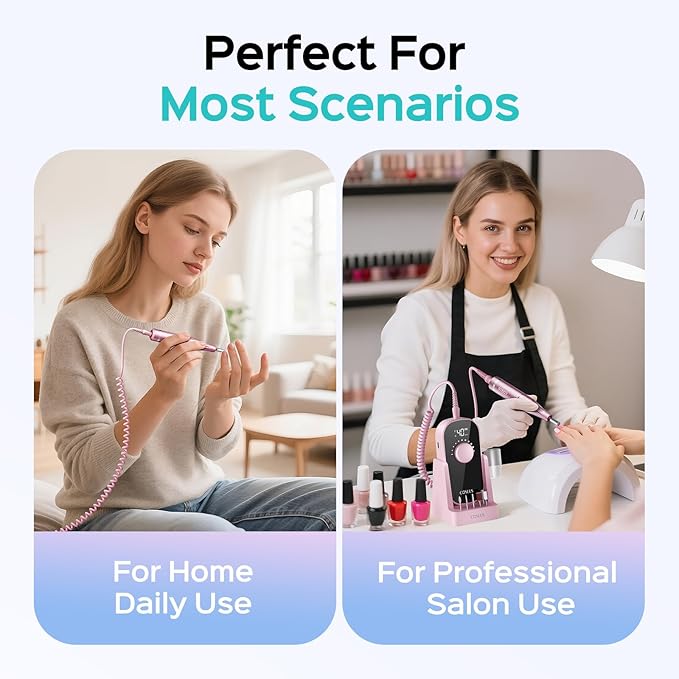 - Co-Created with Salon Pros: Developed alongside professional nail technicians, this drill is built for serious nail enthusiasts. Powered by a high-torque 40,000 RPM motor with 40-level stepless speed adjustment and a smart LED display, it delivers smooth control, quiet operation, and exceptional precision—perfect for shaping acrylics, removing gels, refining cuticles, or mastering advanced techniques at home.