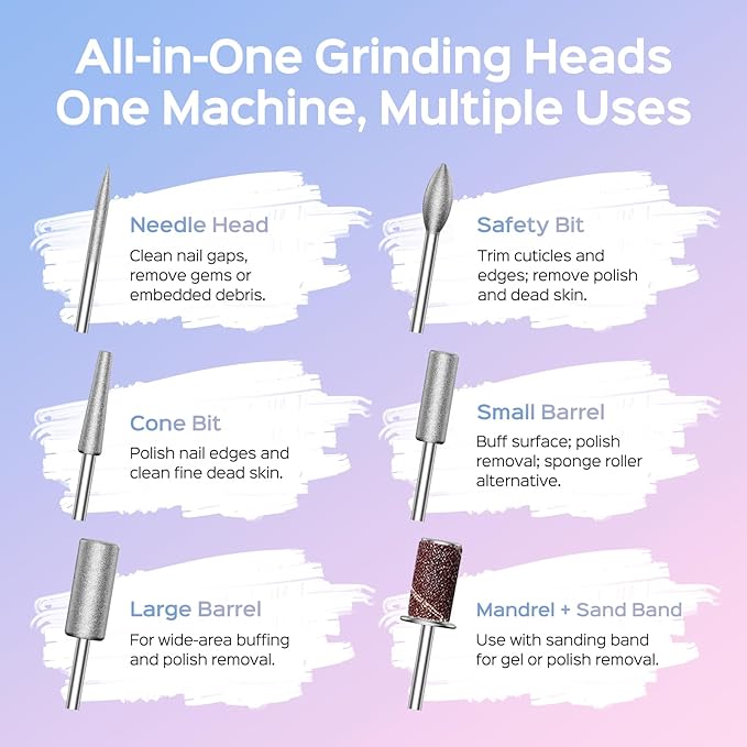 - Upgraded Storage with Hands-Free Use: This upgraded nail drill comes with a dedicated storage base that keeps every drill bit neatly in place and ready for use—no more searching through cluttered drawers. The new built-in back clip lets you attach it to your pocket or belt, making it easy to work while standing, moving, or helping clients. Ideal for nail professionals, mobile technicians, or anyone who values an organized, efficient workspace.