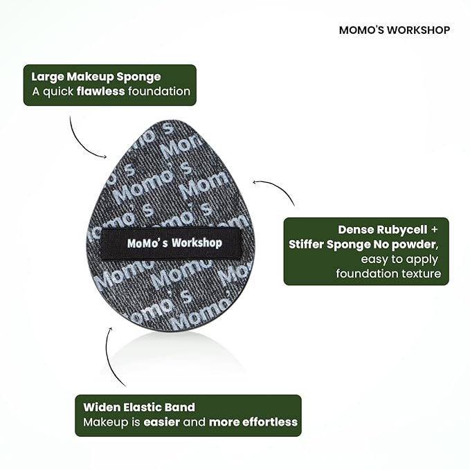 - â±ïžă60-SECOND FULL FACEăDrop-shaped powder puff]- A makeup tool that does not require any technique and is the icing on the cake. Wide elastic band enables rapid stippling motion; Apply liquid 40% faster than beauty sponge.Elastic straps, suitable for all hands.