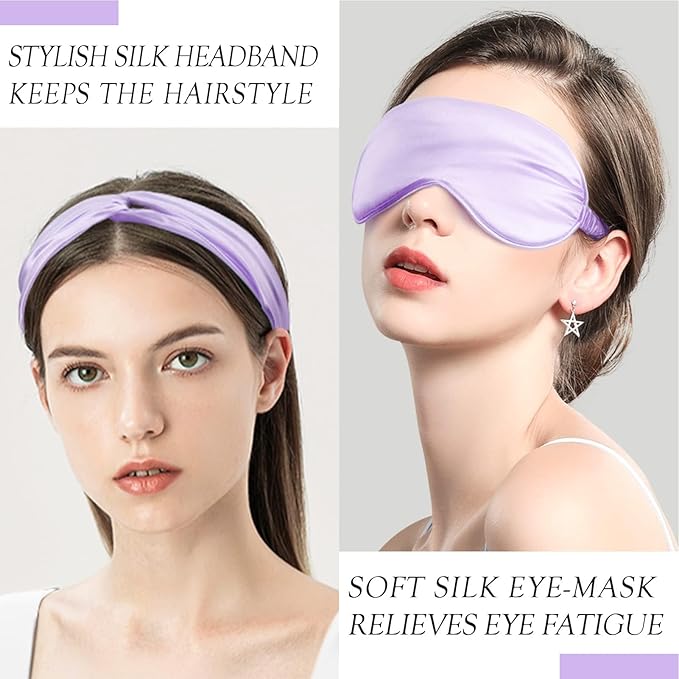 - SILK EYE MASK & SILK HAIRBAND:Comes with a silk eye mask and a silk hairband.The silk headband is pretty soft, comfort, lightweight and fashionable,The silk eye mask is soft, lightweight and helps blocks out bright light and guarantees healthy and pleasant sleep, perfect as relaxing accessories to spoil your lady!