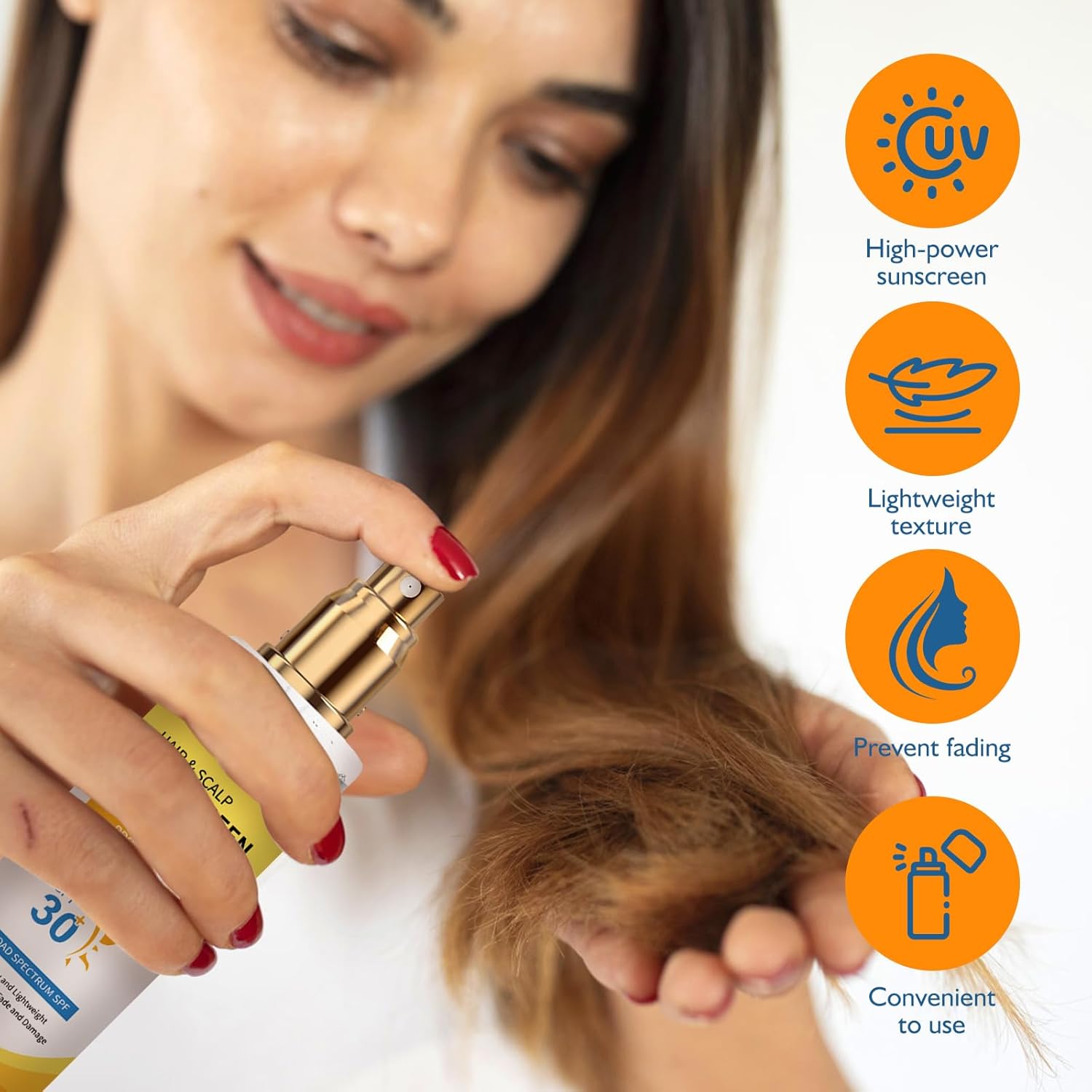 2PC Ultimate Hair & Scalp Sunscreen Spray SPF 30, Hair Sunscreen Spray UV Protection | Color-Lock UV Shield for Dyed/Highlighted | Beach & Pool Essentials | Defense Against Fade & Dryness