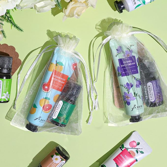 AZEN 30 Sets Bulk Gifts, Hand Cream and Essential Oils Bulk Set with Organza Bag Thank You Card, Baby Shower Wedding Gifts for Guests, Bridal Wedding Favors for Guests,Thank You Gifts for Women