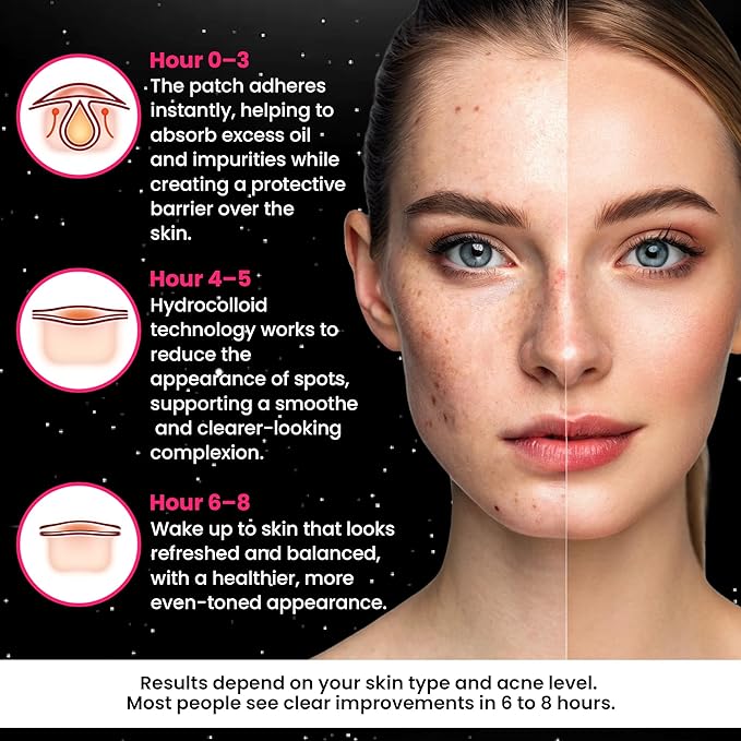- Hydrocolloid & Botanical Extracts for Skin Support: Made with hydrocolloid and infused with botanical extracts like Tea Tree Oil and Centella Asiatica, these patches help absorb excess oil and maintain healthy-looking skin. Gentle and suitable for all skin types, including sensitive skin.