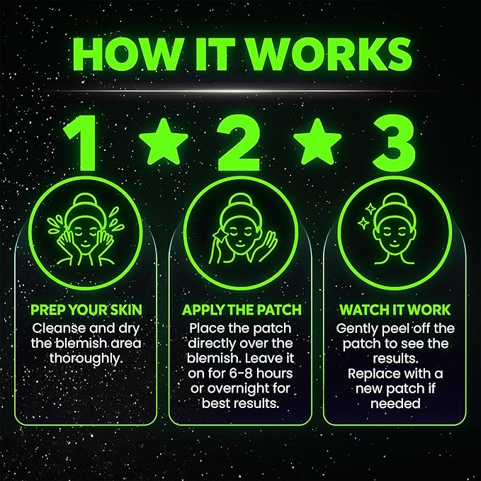- Fun Star Designs: These cute Glow in the Dark star-shaped hydrocolloid patches add a fun twist to your skincare routine. Choose from 3 different size to brighten your day!
