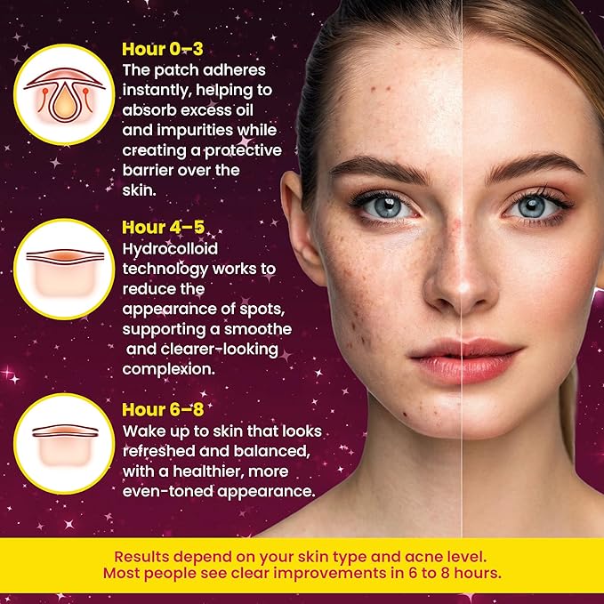 - Hydrocolloid & Botanical Extracts for Skin Support: Made with hydrocolloid and infused with botanical extracts like Tea Tree Oil and Centella Asiatica, these patches help absorb excess oil and maintain healthy-looking skin. Gentle and suitable for all skin types, including sensitive skin.