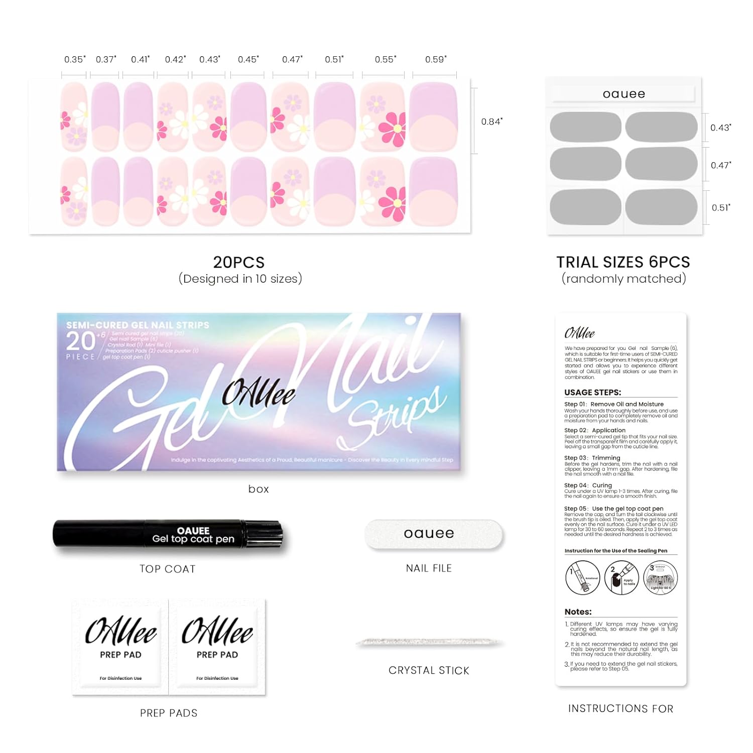- Innovative Gel Nail Strips: Nail gel strips are made from 100% real gel nail polish ingredients, not plastic material. Through its expertise, OAUEE presents semi-curing gel nail strips, made with an innovative formula that comfortably fits all types of nail sizes and shapes and achieves a perfect aesthetic look for your nails!