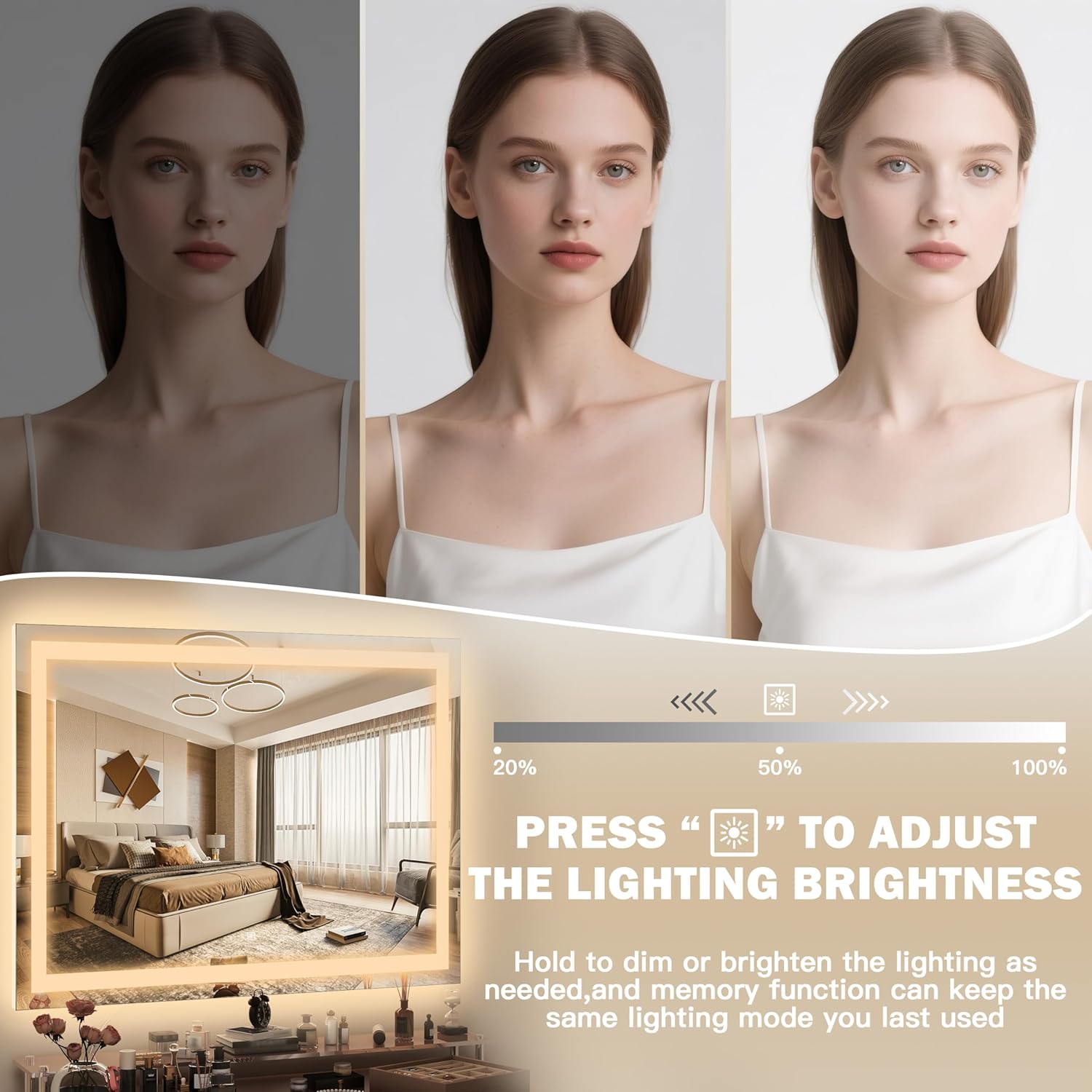 - 【Professional 3D Illumination】Achieve studio-grade makeup precision with edge-to-edge LED halo lighting that eliminates facial shadows. Touch-sensitive controls adjust 3 professional color temps (3000K Warm/4500K Natural/6000K Cool) replicate 7 daylight conditions. 10%-100% stepless touch control with auto memory function.