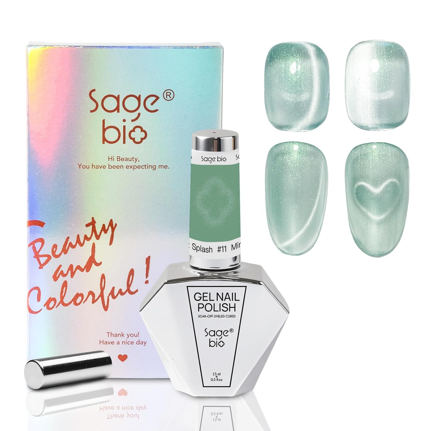 - Single Bottle, Salon Size: Includes one 15ml/0.5oz bottle of SAGEBIO Cat Eye Gel Polish. Use with magnet and different base colors to create unique shimmering nail effects. Customize your style from soft to bold.
