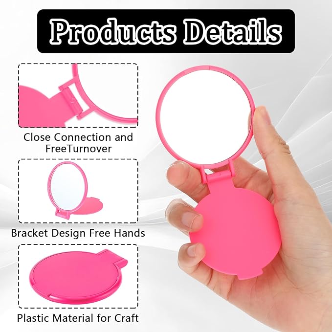 - Foldable Feature: The foldable design not only makes them more compact but also protects the mirror surface when not in use. It's easy to open and close, providing convenience and ensuring the pocket mirror stays in good condition during storage and transportation