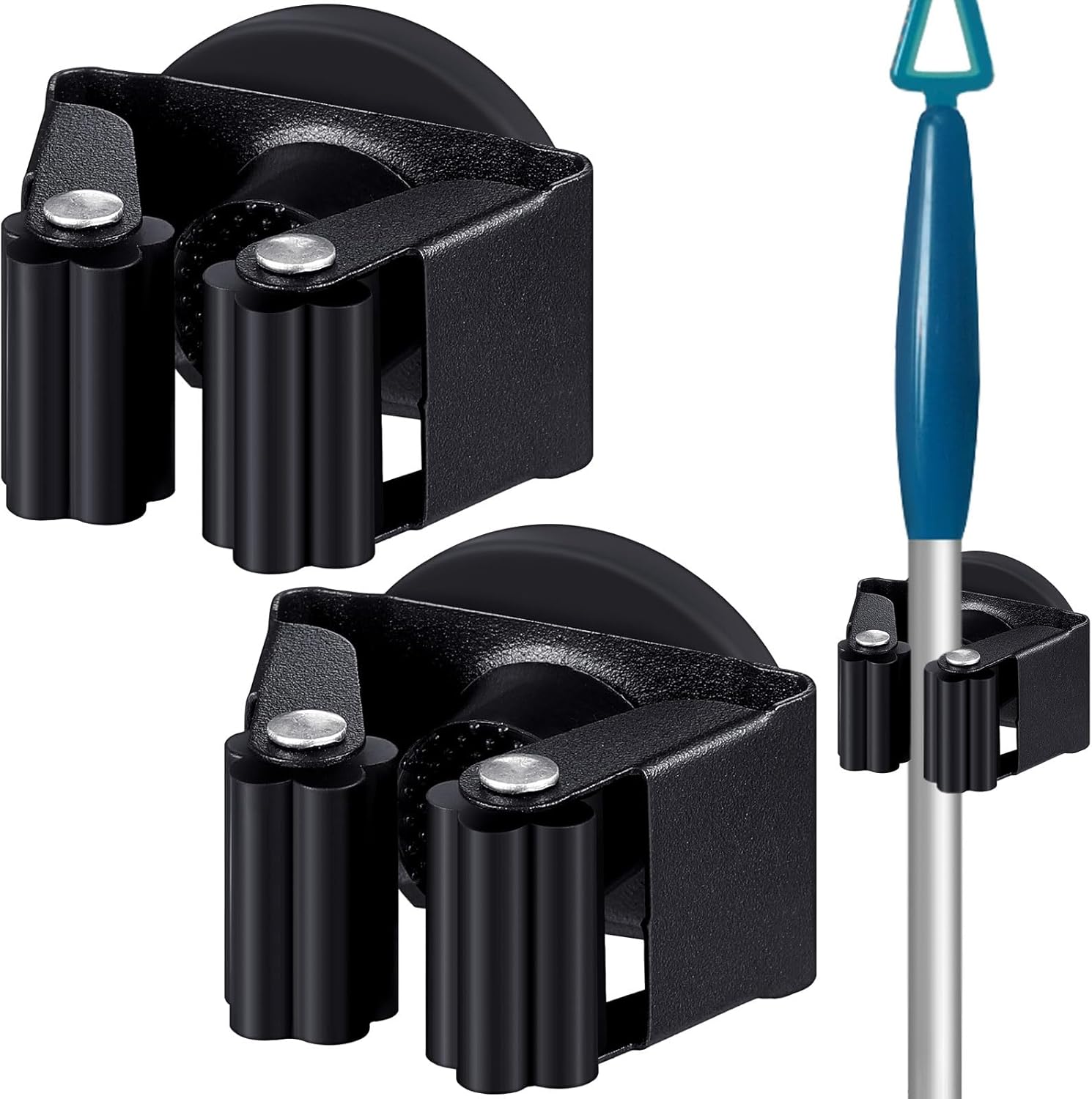 2 Pcs Magnetic Mop Broom Holder Movable Magnetic Broom Holder Rack, Anti Slip Wall Mounted Utility for Cleaning Tools, Garage, Kitchen, Laundry, Garden (Black)