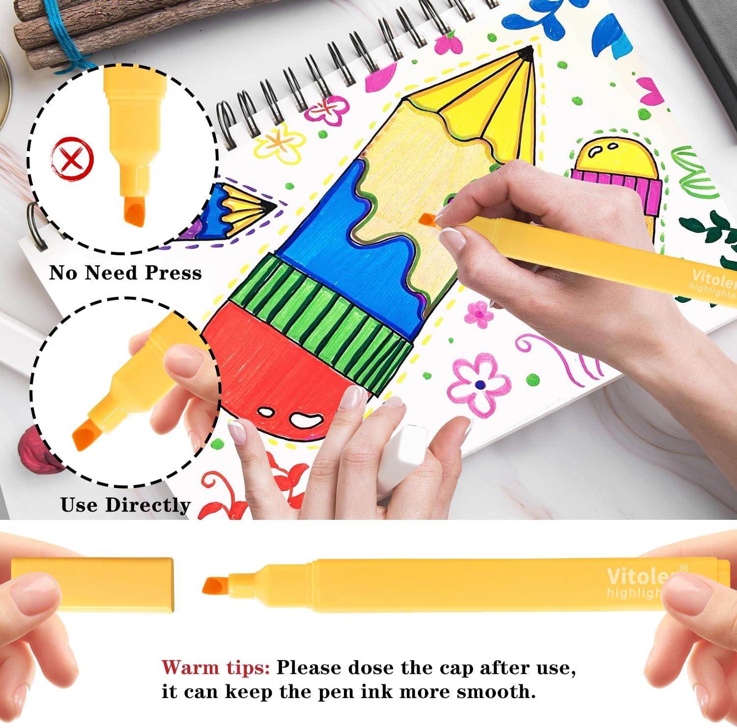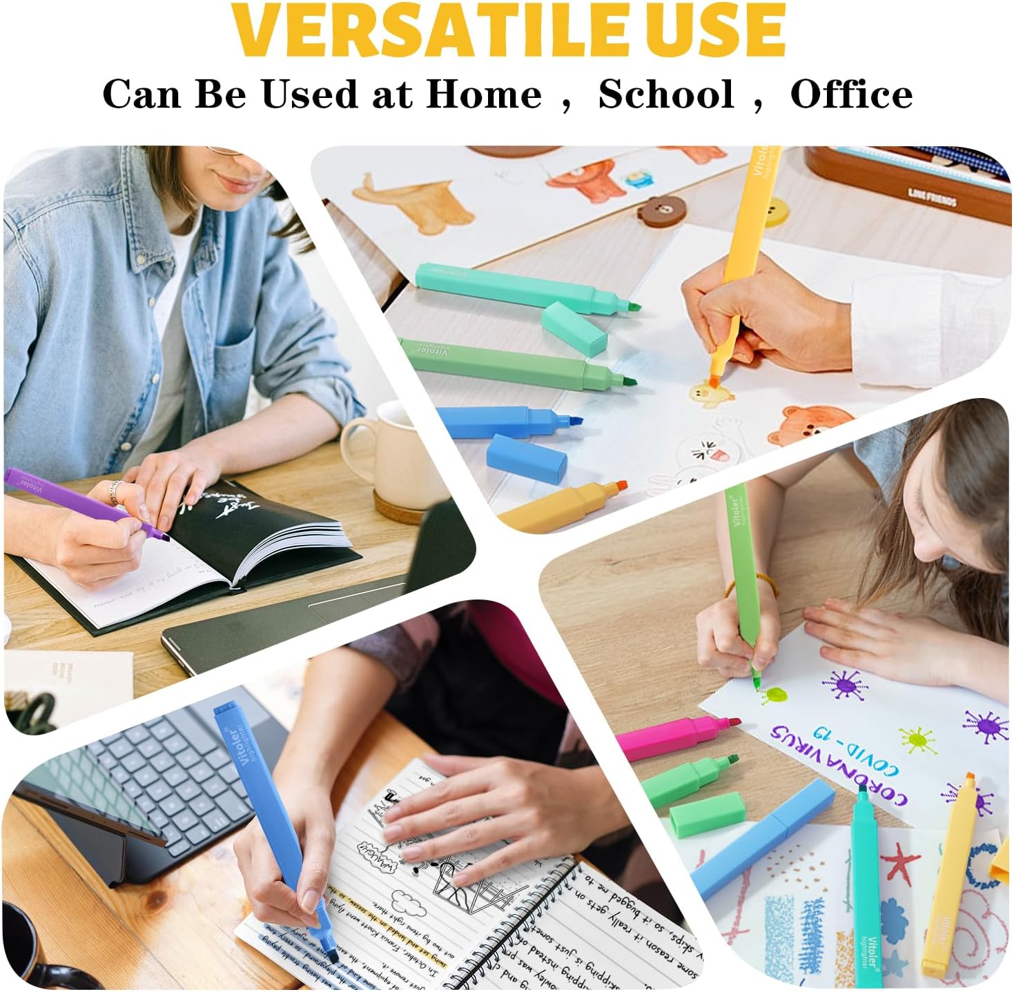 - Highlighters Bulk Easy to Hold: The pastel highlighter is designed with square shape,it’s comfortable and easy to hold, without a sore hand and don't roll around while using.