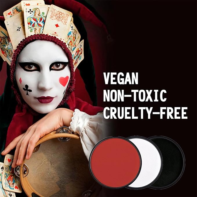 - 【Classic 】 Classic Halloween hues (black, white, red). Come with 2pcs brush, Sponge, Powder puff, LARGE CAPACITY can satisfy all your needs. It can be used directly or used to mix, layer & blend for custom colors to create variety of classic and unique character looks.