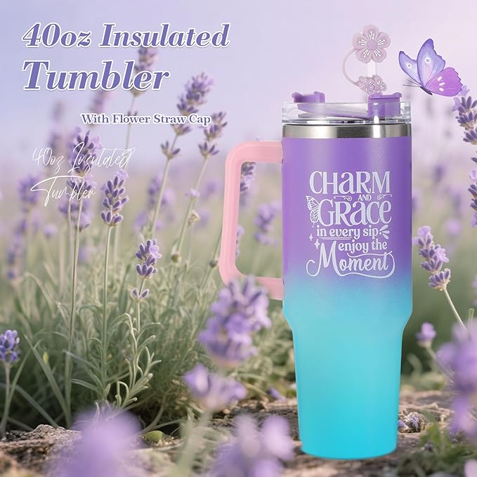 - 【40oz Practical Insulated Tumbler with Lid】: Made of 304 stainless steel, the 40oz insulated tumbler with double-layer vacuum insulation technology can keep beverages at the perfect temperature for hours, whether hot or cold. Since the cup lid is not sealed, the tumbler cannot be turned upside down. The sturdy handle offers a comfortable grip. Positive and uplifting blessings printed make it an ideal relaxation gifts for her, ideal for a peaceful morning or a cozy evening moment