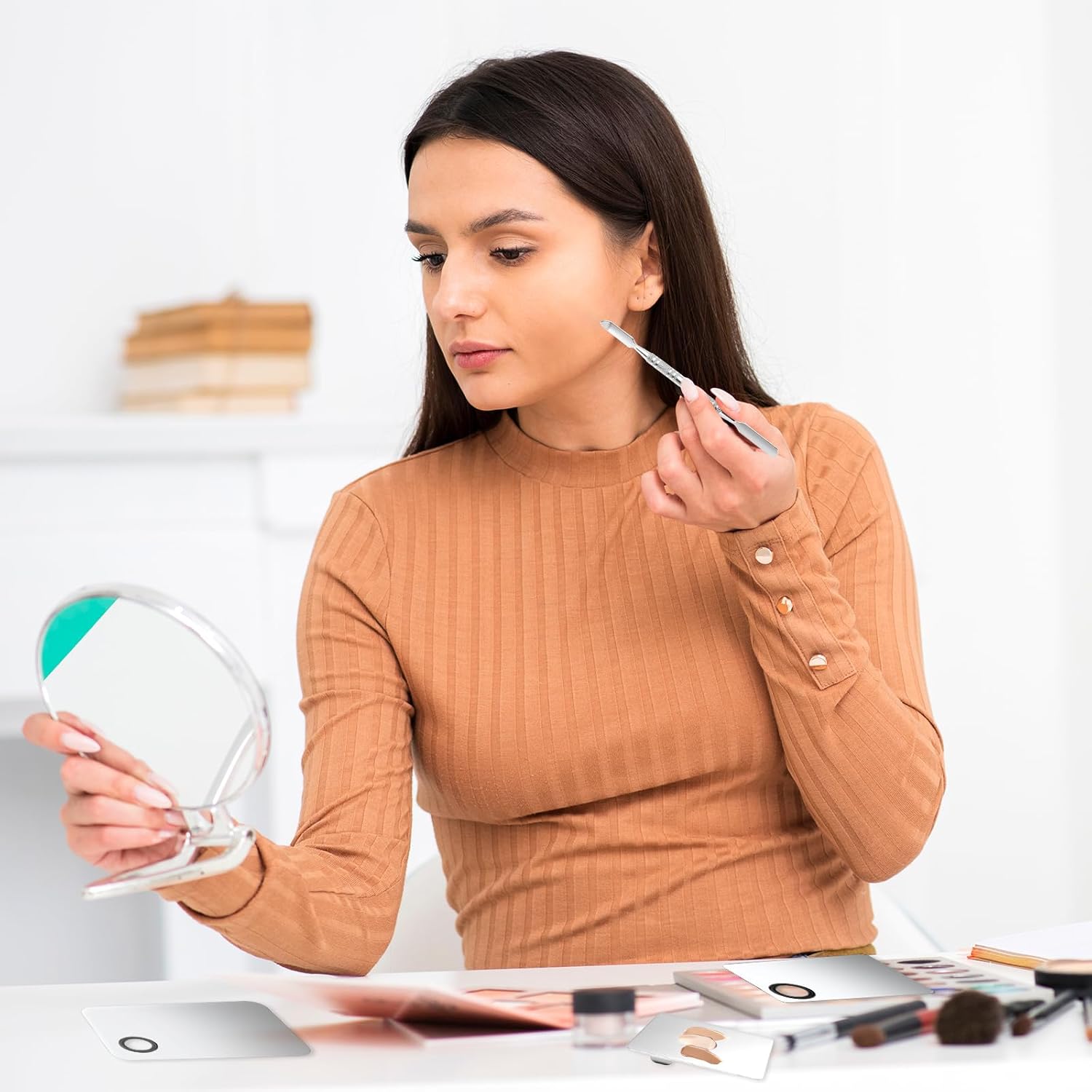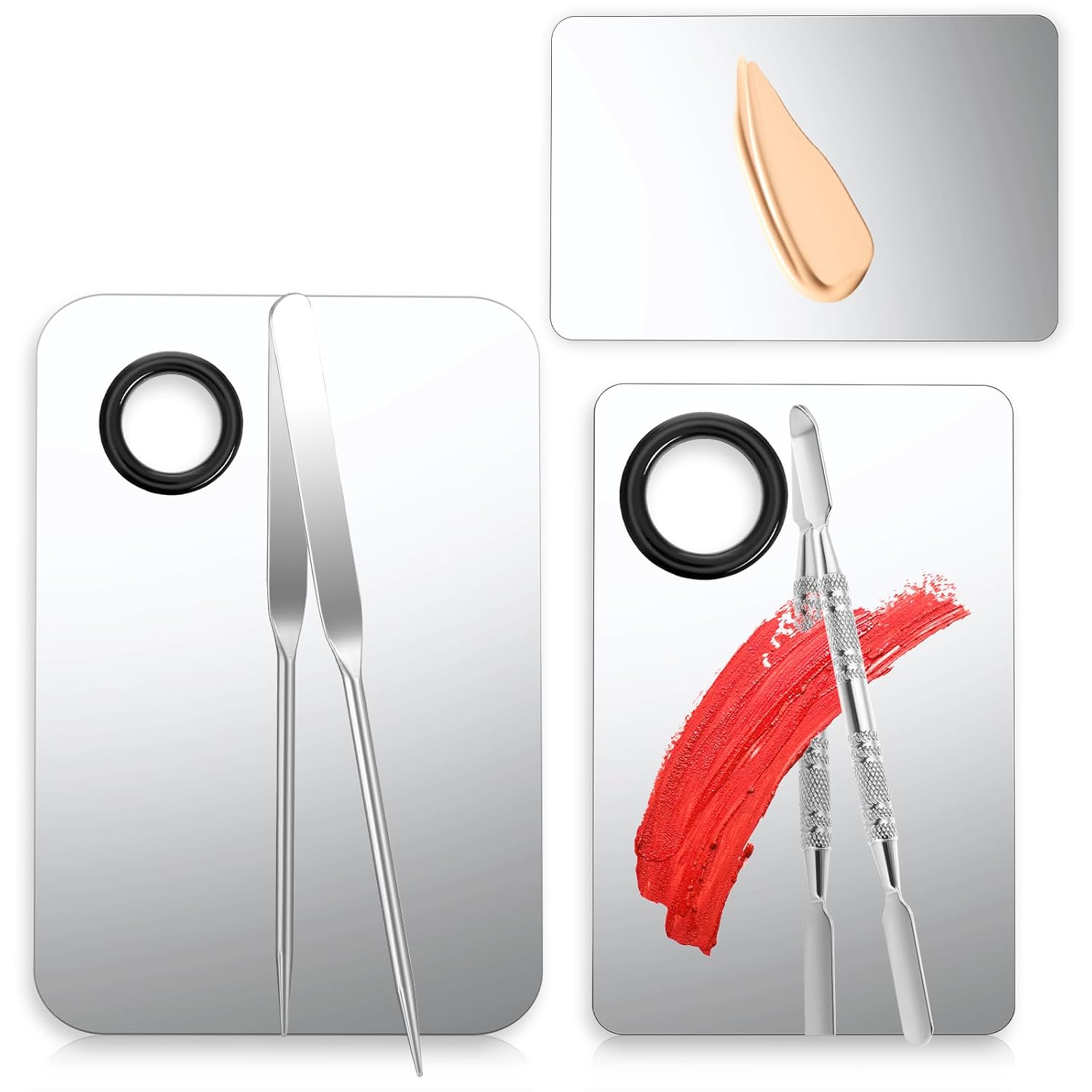 - 【Wide application】Stainless steel makeup mixing tray is suitable for mixing liquid foundation, lipstick, eye shadow, and other cosmetics, as well as nail gel, art pigment toning. This makeup palette is perfect for professional makeup artists and non-professional makeup lovers alike, making the makeup spatula the perfect gift for them.