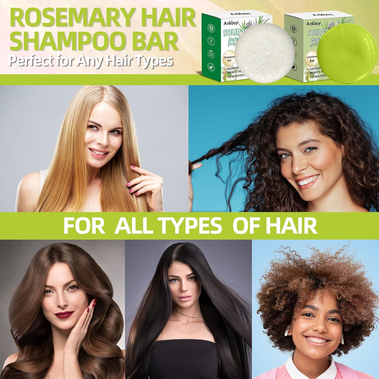 2 Pack Rosemary Oil Shampoo Bar and Conditioner Set–Natural Hair Bar Soap & for for Men and Women,Strengthens,Thickens,and Controls Oil with Organic Rosemary,Supports Scalp Health & Reduces Hair Loss.