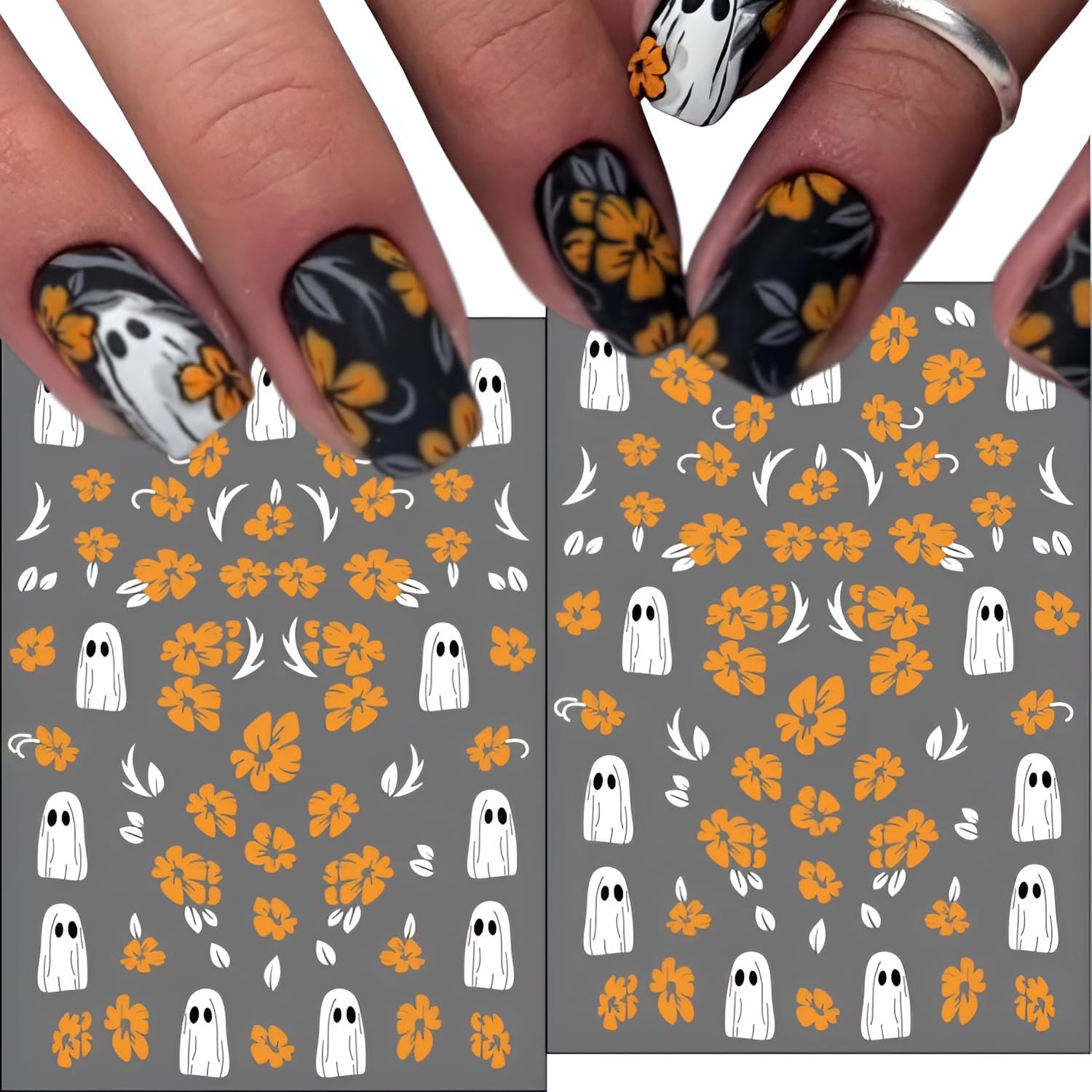 - Halloween Nail Art Stickers: You will receive 12 sheets cute ghost nail stickers for nail art,Large number of different patterns for you to use and replace in daily life, nail decals are full of sensuality and elegance, various charming patterns bring you a different mood.