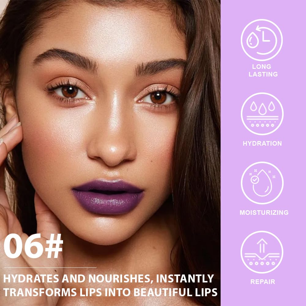 BINGBRUSH Color Changing Lipstick Set, PH Mood Peach Lip Balm and Gloss, Long Lasting Tinted Lip Stain (06# Midnight Berry, 1 Count (Pack of 1))