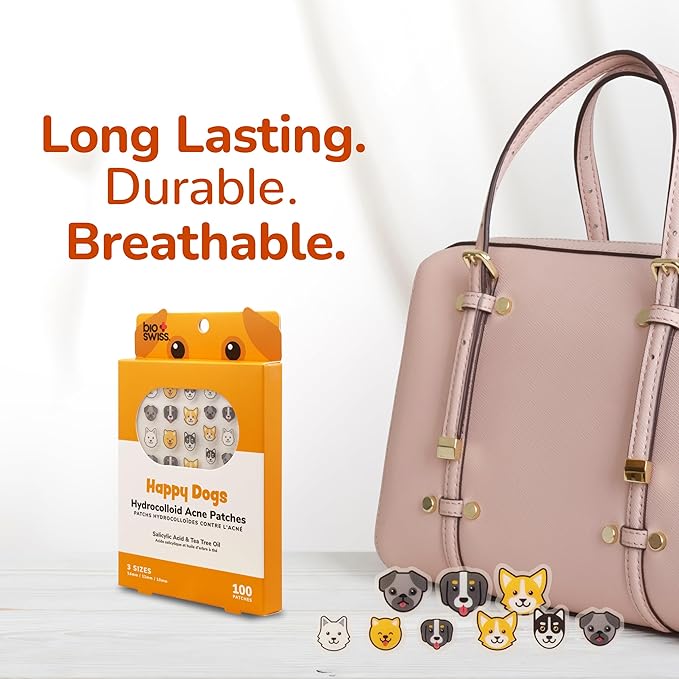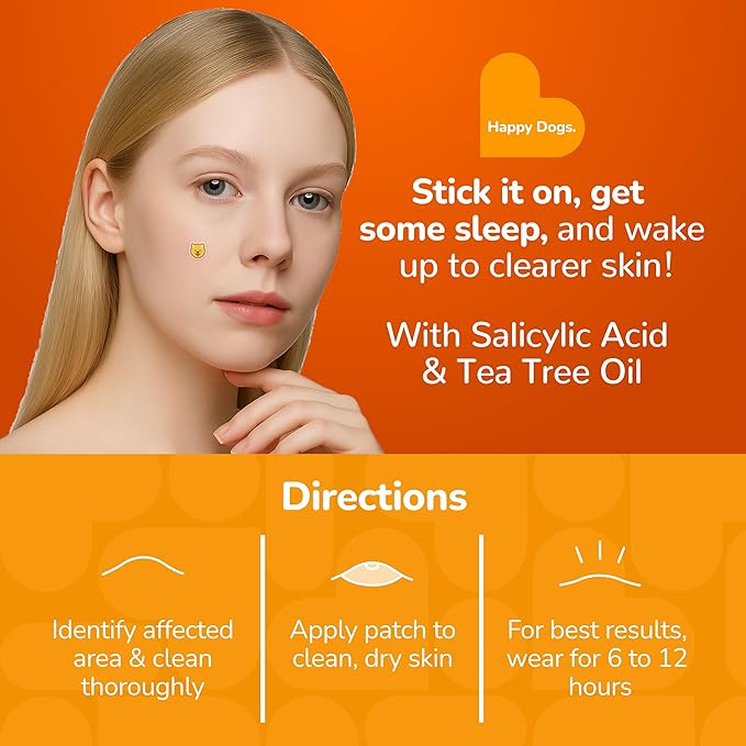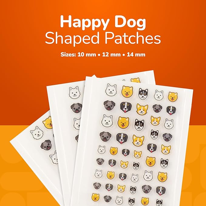 - HAPPY DOGS ACNE PATCHES: Tackle zits and blemishes effectively and achieve clear and smooth skin with our Happy Dogs Acne Patches. Our patches for pimples come in 6 funny and cute assorted styles: