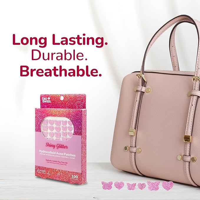 BioSwiss Pimple Patches, Shiny Glitter Patch for Zits and Blemishes, Hydrocolloid Spot Stickers for Face and Skin, 100 Count