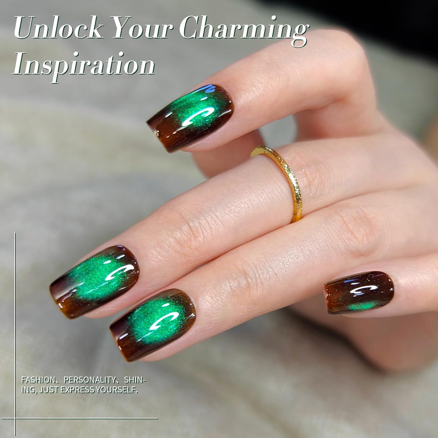 - PACKAGE CONTENTS: 1 bottle 15ml brown green cat magnetic eye gel nail polish, compared with traditional gel polish, our magnetic gel nail polish has a higher gloss and silky effect, just like ceramic gloss, making your fingertips bloom with attractive charm. This Retro brown green cat magnetic eye gel nail polish will appear differently in different angles and light.